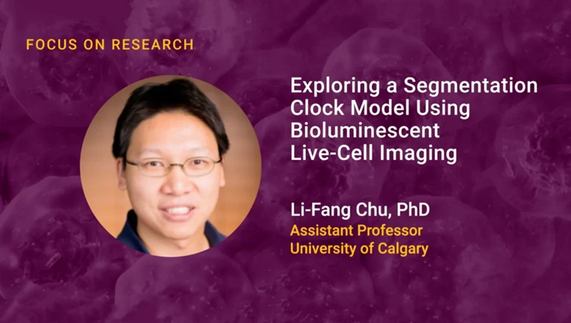 The development of the human embryo is a complicated process that involves careful coordination of thousands of genes. Dr. Li-Fang Chu, Assistant Professor at the University of Calgary, is interested in studying the developmental clock and how it is regulated. Using bioluminescence live-cell imaging, his group visualized expression levels of a segmentation clock gene, HES7, in a human embryonic stem cell model.